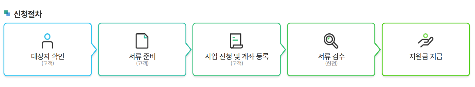 한전 고효율 구매비용 지원사업 메뉴에서 신청이 가능하고, 신청절차는 아래와 같습니다.