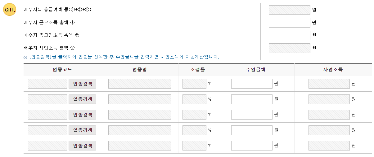 위에 신청요건에 맞춰 입력 후 총급여액 등 입력을 하시면 됩니다.